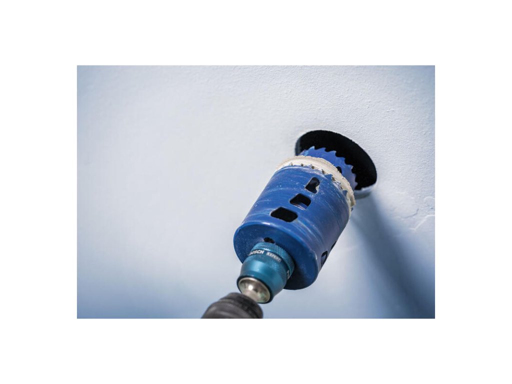 Na rýchlu výmenu dieroviek a zväčšovanie otvorov! V súčasnosti sú LED stropné svietidlá dostupné v rôznych veľkostiach: ich inštalácia nie je vždy jednoduchá, pretože na nainštalovanie nového svetla musíte najskôr zväčšiť existujúci otvor. Vytvorili sme adaptér na zväčšenie otvorov EXPERT, ktorý vám umožní jednoduchšie a rýchlejšie zväčšiť existujúce otvory. Adaptér na zväčšenie otvorov EXPERT dodáva upínaciemu systému Bosch Power Change Plus ďalšiu výhodu navyše, vďaka čomu bude pre vás práca s dierovkami jednoduchšia a efektívnejšia.