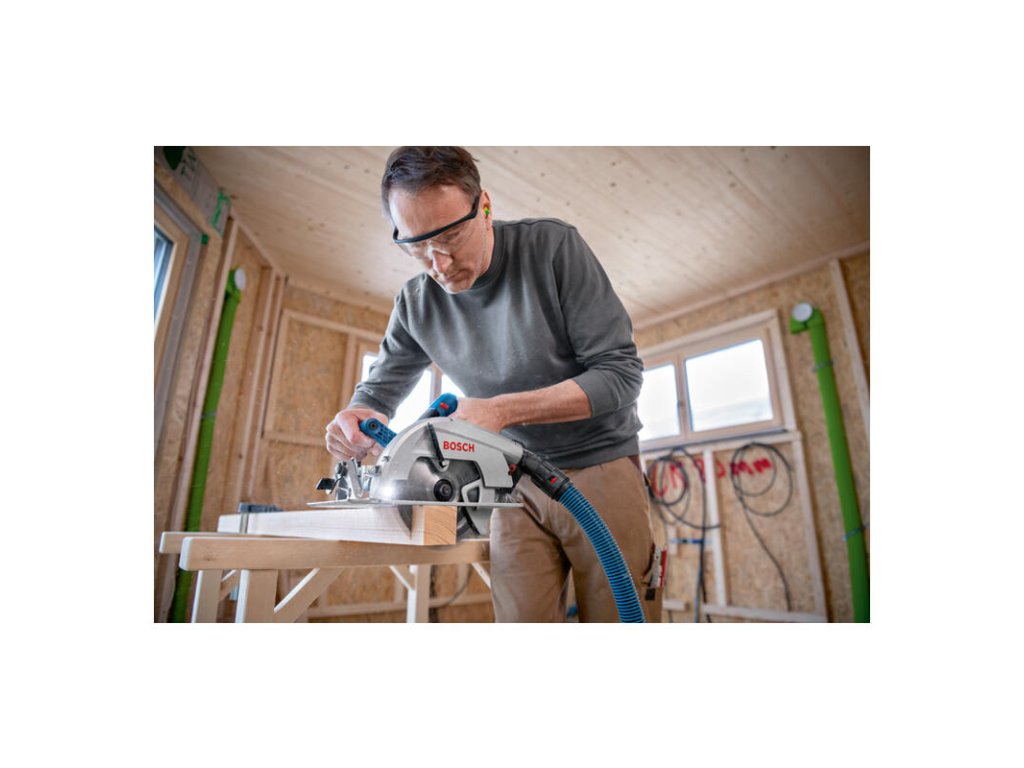 Táto píla je navrhnutá pre maximálnu efektivitu a presnosť. Kotúč umiestnený vľavo poskytuje perfektnú kontrolu rezu, čo je ideálne pre tesárov a strechárov pri rezaní trámov a dosiek. Vďaka odsávaciemu adaptéru otočnému o 360° je možné pripojiť vysávač, čo zvyšuje komfort pri práci.Hlavné vlastnosti a výhody Aku Okružná píla BOSCH GKS 18V-70 L