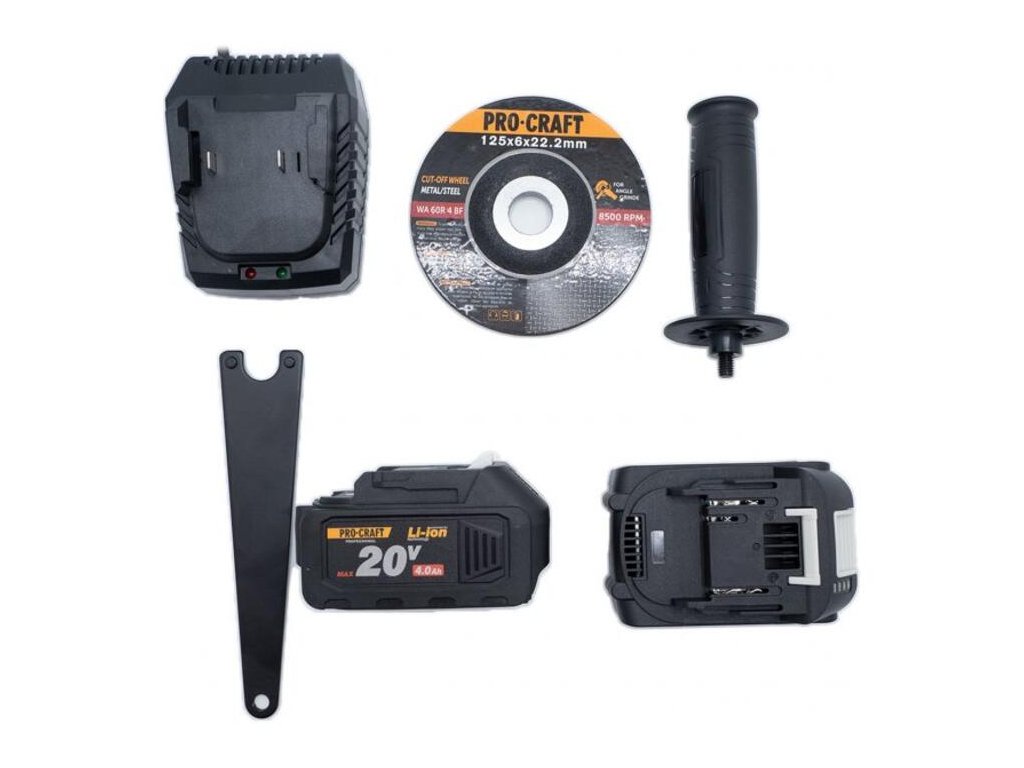 ProCraft PGA20 Akumulátorová uhlová brúska 125 mm 2x4 Ah pre všestranné použitie