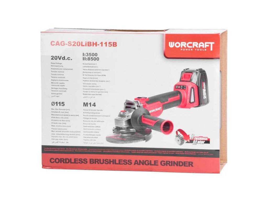 Prečo zvoliť 115 mm variant? Uhlová brúska Worcraft CAG-S20LiBH vyniká svojou nízkou hmotnosťou a štíhlym telom, ktoré perfektne padne do ruky. Bezpečnostný vypínač chráni používateľa pred náhodným spustením, zatiaľ čo prídavná rukoväť s protišmykovým povrchom tlmí vibrácie a zaisťuje istý úchop. Dodávaný kufor chráni vašu uhlovú brúsku aj s príslušenstvom pred poškodením pri prenášaní.Hlavné vlastnosti a výhody brúska CAG-S20LiBH 115 mm