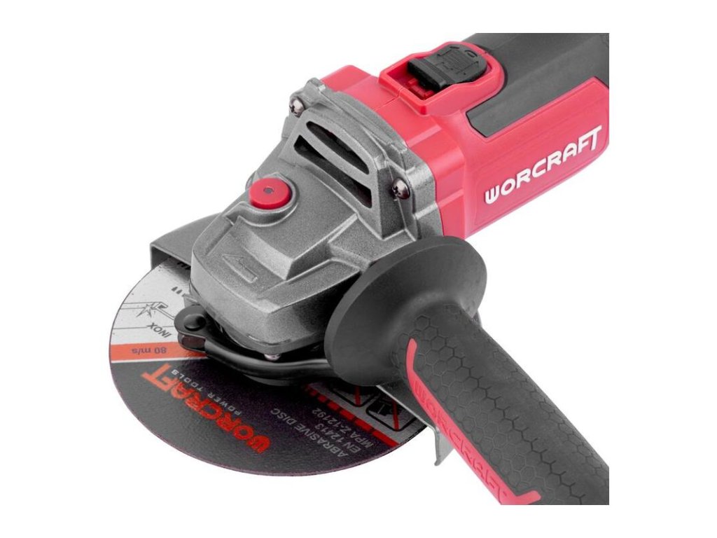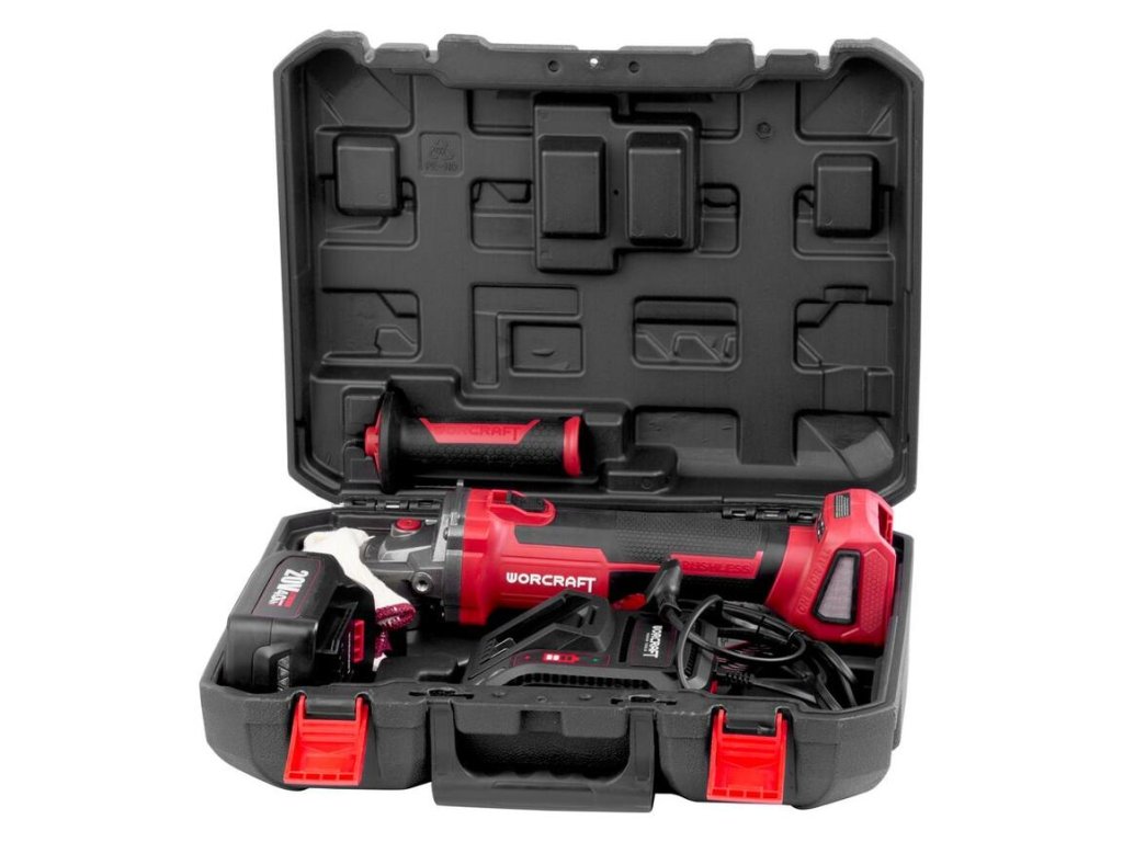 Prečo si vybrať práve tento set? Uhlová brúska Worcraft CAG-S20LiBH disponuje bezpečnostným vypínačom a rýchloupínacím mechanizmom krytu kotúča pre bleskové nastavenie uhla. Prídavná rukoväť s mäkkou podložkou účinne tlmí vibrácie, čím táto akumulátorová brúska chráni vaše zdravie a zvyšuje presnosť pri každom reze.Hlavné vlastnosti a výhody brúska CAG-S20LiBH