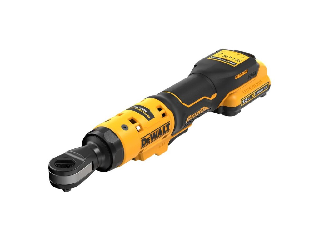 Táto akumulátorová račňa využíva 12V XR systém, ktorý vyniká nízkou hmotnosťou a kompaktnými batériami. Integrovaný zámok spúšte zabraňuje náhodnému spusteniu pri prenášaní v taške. LED svetlo umiestnené na hlave stroja dokonale osvetľuje pracovnú oblasť, čo je kritické pri práci v tmavých častiach strojov. Verzia Solo je perfektnou voľbou pre mechanikov, ktorí už vlastnia 12V nabíjačky a batérie DeWALT.Hlavné vlastnosti a výhody račne DCF503EN