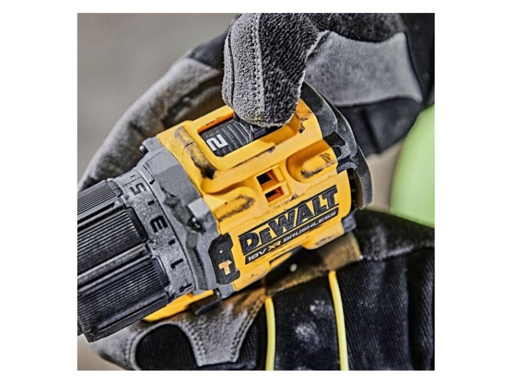 Aj so zameraním na bezpečnosť zostáva DeWALT DCD805P2LRT výkonným strojom s bezuhlíkovým motorom. Je mimoriadne krátka, čo umožňuje manipuláciu v stiesnených podmienkach na stĺpoch alebo v podhľadoch. Celokovová dvojstupňová prevodovka a príklepový mechanizmus zaisťujú, že zvládnete vŕtanie do akéhokoľvek materiálu bez kompromisov.Hlavné vlastnosti a výhody vŕtačky DCD805P2LRT