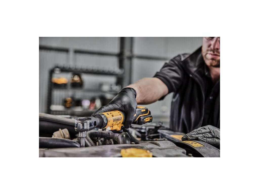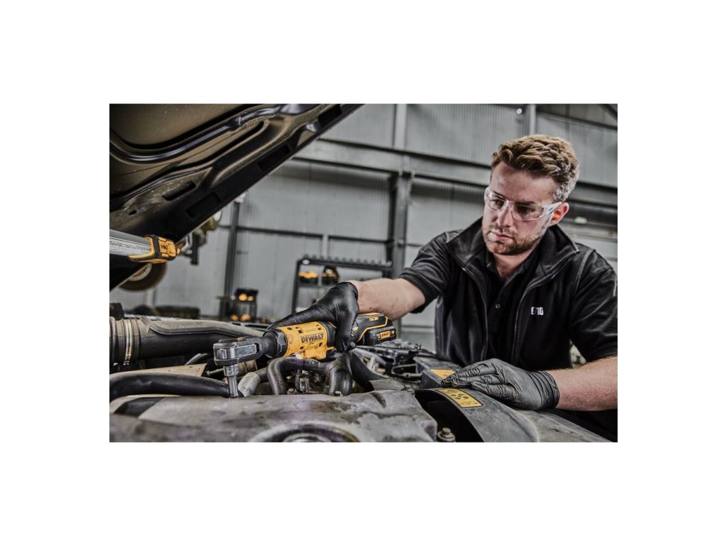 Pracujete v prostredí, kde sú oleje, rozpúšťadlá a tuky na dennom poriadku? Akumulátorová račňa DeWALT DCF503L1G je vybavená špeciálnou GFN batériou, ktorej puzdro odoláva aj tým najagresívnejším chemikáliám. S krútiacim momentom 81 Nm a bezuhlíkovým motorom získate silu a vytrvalosť potrebnú pri skrutkovaní v motorovom priestore. Štíhle telo a horizontálne uloženie akumulátora umožňujú prístup tam, kde iné náradie zlyháva.Maximálna produktivita s 12V XR technológiou