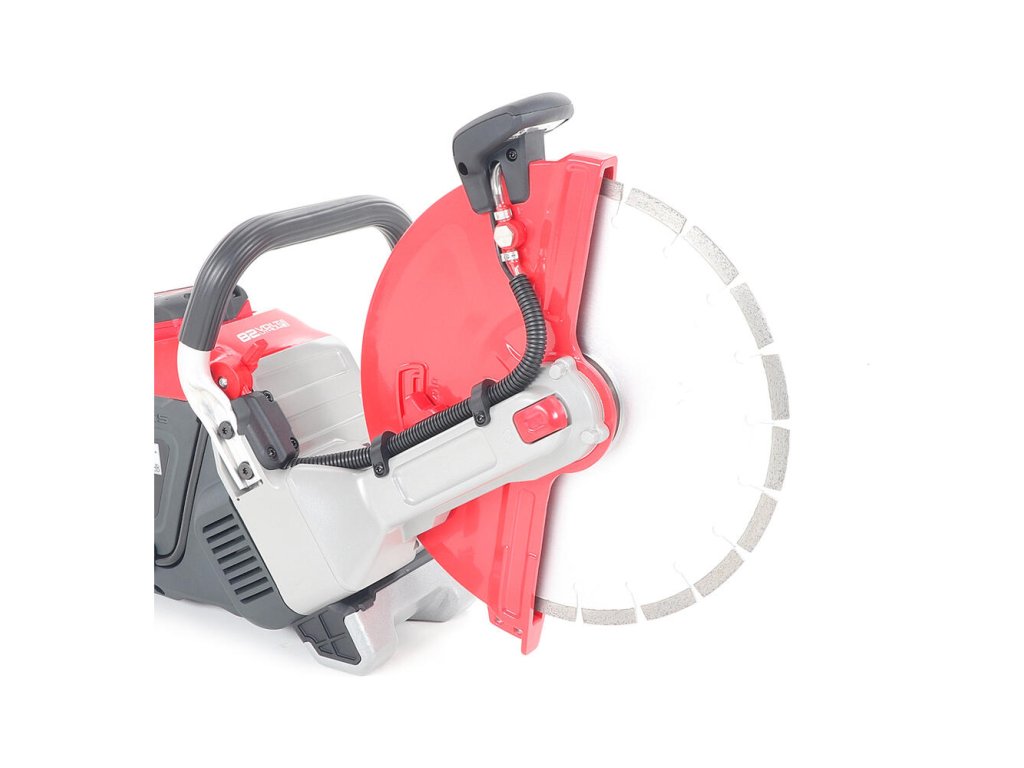 Model je vybavený nastaviteľným krytom kotúča, ktorý umožňuje prispôsobenie až do piatich polôh, čo zvyšuje bezpečnosť a flexibilitu pri práci. Ďalšou výhodou je nastaviteľný prietok vody, ktorý pomáha chladenie a znižuje tvorbu prachu počas rezania.