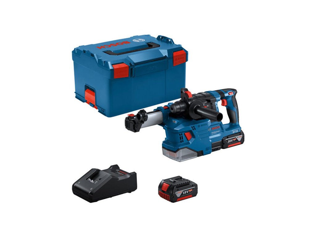 Celá zostava je navrhnutá pre maximálnu mobilitu a vŕtanie nad hlavou. Odsávanie nezväčšuje výrazne rozmery stroja, takže vŕtanie v šachtách zostáva jednoduché. Funkcia KickBack Control zaisťuje ochranu operátora pri zaseknutí nástroja, zatiaľ čo Vibration Control minimalizuje otrasy. Set v kufri L-BOXX 238 zaručuje, že vaše náradie, batérie aj odsávanie budú vždy na svojom mieste a chránené pred poškodením.✨Hlavné vlastnosti a výhody vŕtacie kladivo GBH 18V-22