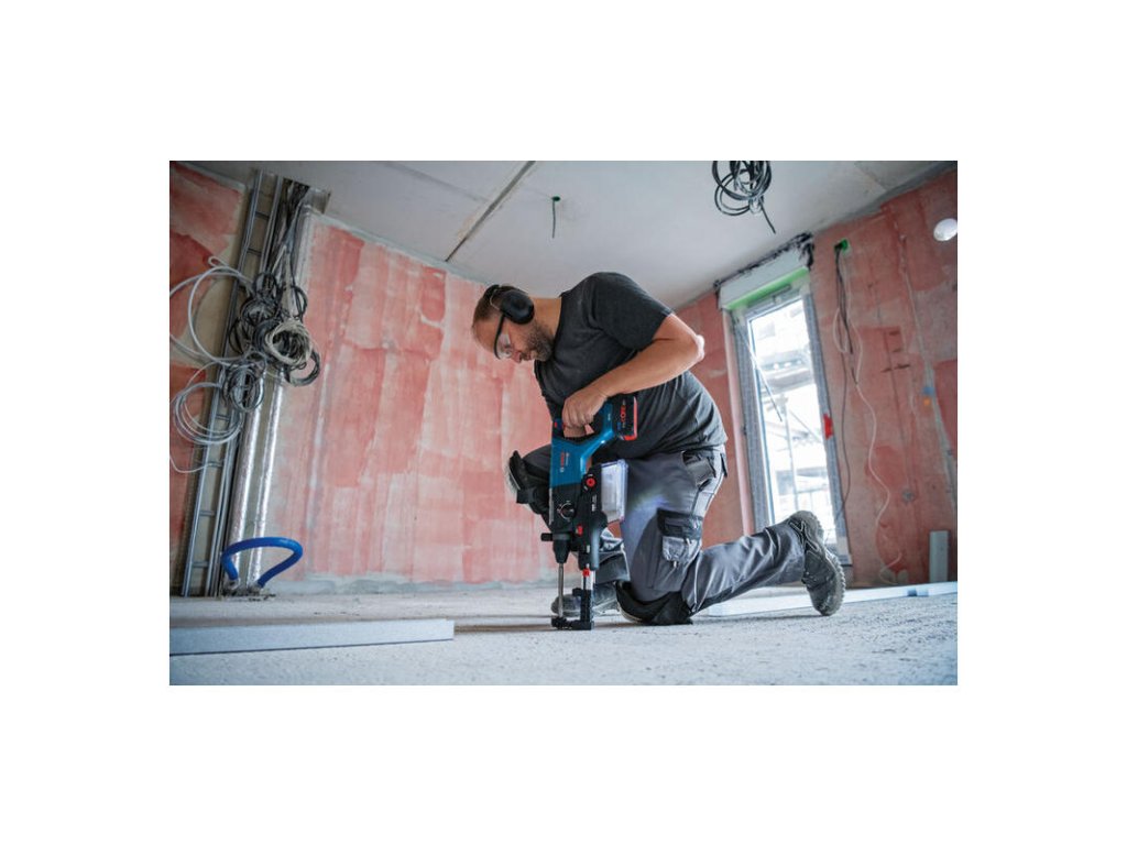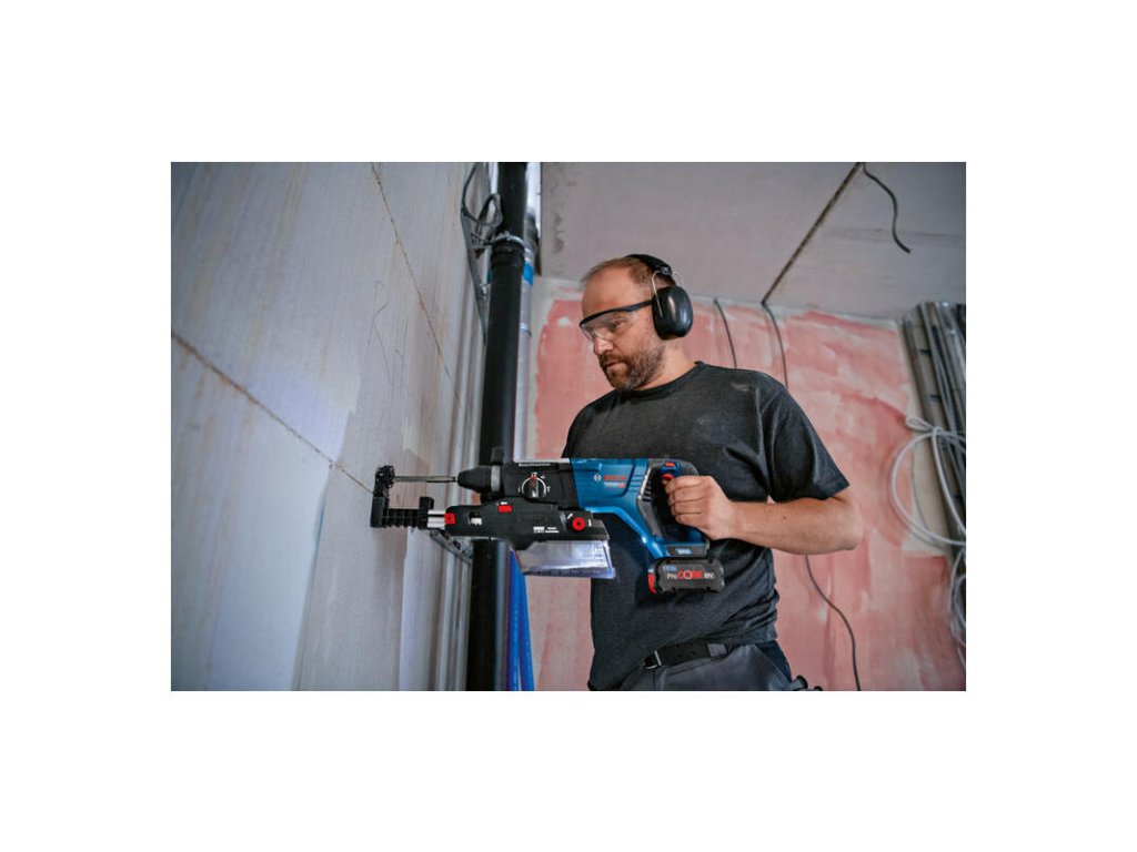 D-rukoväť pri modeli GBH 18V-28 D Professional nielen chráni vašu ruku, ale umožňuje aj silnejší prítlak pri sekaní drážok alebo vŕtaní otvorov veľkých priemerov (do 28 mm). O vašu bezpečnosť sa starajú systémy KickBack Control a Vibration Control, ktoré minimalizujú riziká pri práci. Kladivo je pripravené na pripojenie odsávacieho systému GDE 28 D, čím zabezpečíte čisté pracovné prostredie bez ohľadu na náročnosť úlohy.✨Hlavné vlastnosti a výhody vŕtacie kladivo GBH 18V-28 D