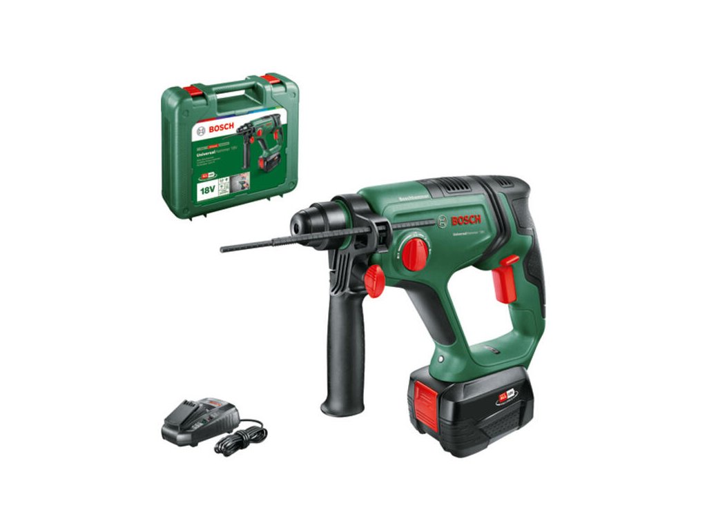 Hľadáte ideálneho pomocníka na prestavbu bytu? Akumulátorové vŕtacie kladivo BOSCH UniversalHammer 18V v sade s 4,0 Ah batériou prináša perfektnú kombináciu výkonu a výdrže. Tento multifunkčný stroj 4 v 1 zvládne vŕtanie otvorov pre hmoždinky do panelu, osekávanie starých obkladačiek aj skrutkovanie dlhých skrutiek do dreva. Pneumatický mechanizmus so silou 2,0 J zaisťuje, že práca s tvrdými stavebnými materiálmi bude pre vás hračkou.Dlhšia výdrž a bezpečná manipulácia s technológiou Bosch