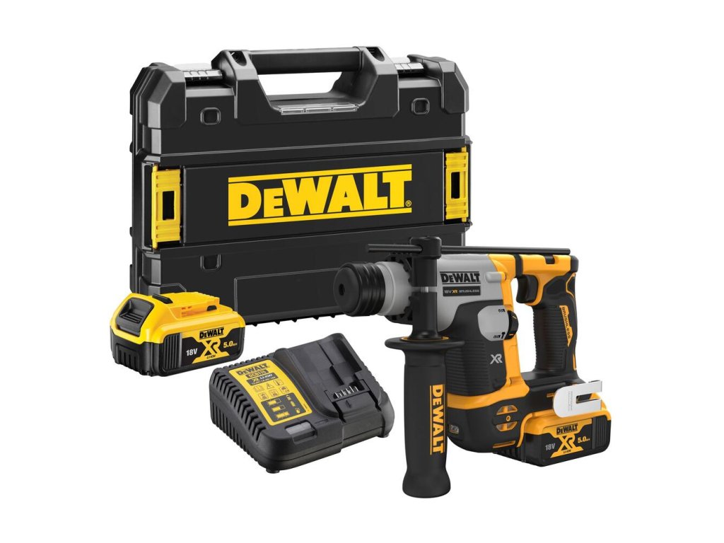 Tento set obsahuje dva 5,0 Ah akumulátory, čo v kombinácii s úsporným motorom zaručuje, že nebudete musieť prácu prerušovať kvôli nabíjaniu. Bezpečnosť a zdravie chráni systém Vibration Control, ktorý drží vibrácie na špičkovej úrovni 8,8 m/s2. Ergonomický dizajn s LED osvetlením s funkciou dosvitu robí z tohto stroja dokonalý nástroj pre prácu v tmavých kútoch a podhľadoch, pričom kufor TSTAK zabezpečí systémové uloženie.✨Hlavné vlastnosti a výhody vŕtacie kladivo DCH172P2