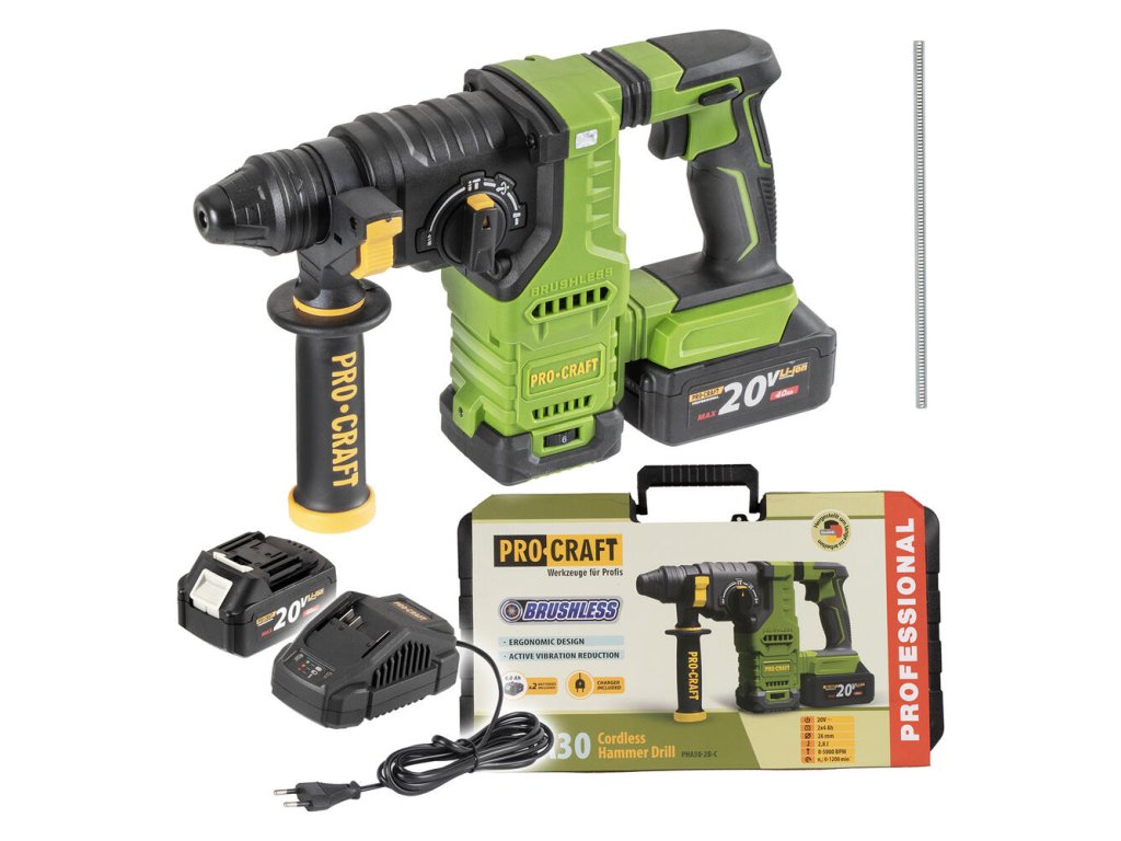 ✔️ Akumulátorové vŕtacie kladivo Procraft PHA30✔️ 2× akumulátor 20 V 4 Ah Li-Ion