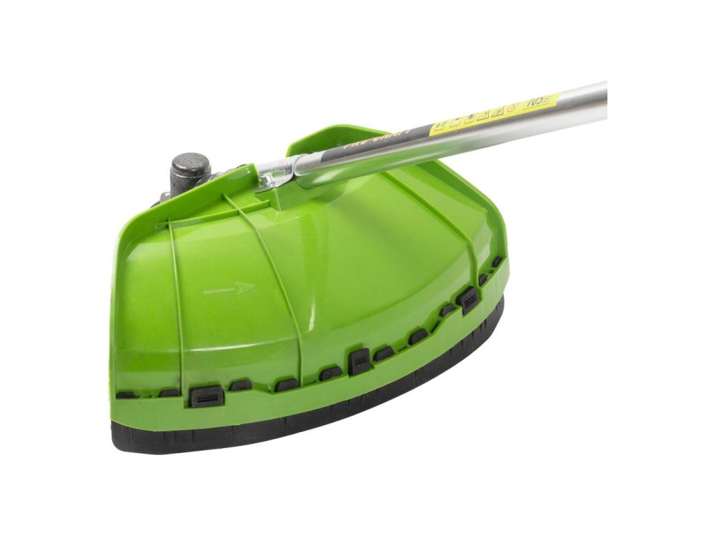 Krovinorez je optimalizovaný pre 2,4 mm strunu, ktorá poskytuje ideálnu rovnováhu medzi rezným výkonom a výdržou batérie.