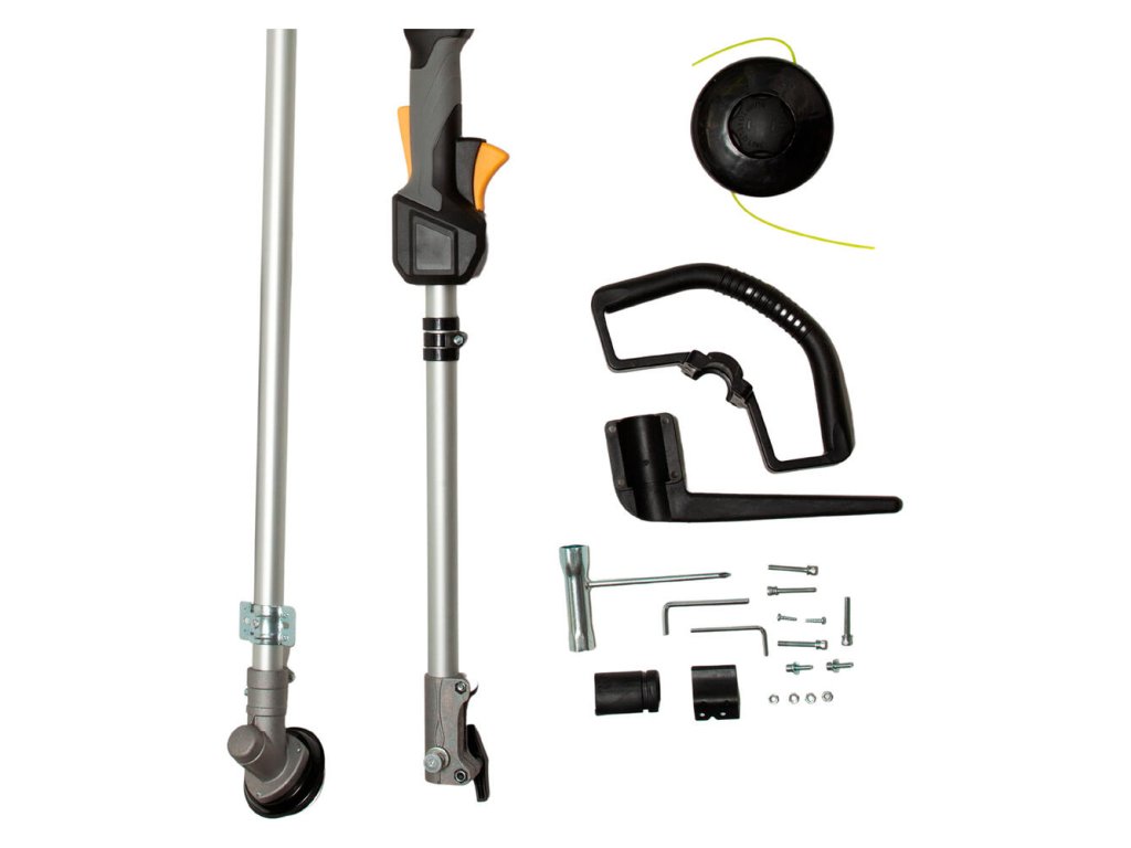 Stroj je vybavený funkciou soft start, ktorá chráni mechanické súčasti pred opotrebovaním pri štarte.Dôležitý benefit: kombinácia kovového hriadeľa o priemere 8 mm a silného elektromotora vám umožní efektívne dokášanie burinového porastu aj vo svahoch. Dvojramenný popruh v balení zabezpečuje ideálne rozloženie váhy pre prácu bez nadmernej únavy.