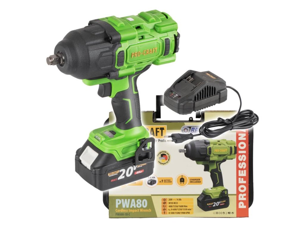 ✔️ Rázový uťahovák ProCRAFT PWA80✔️ 1x akumulátor 20V 4,0 Ah