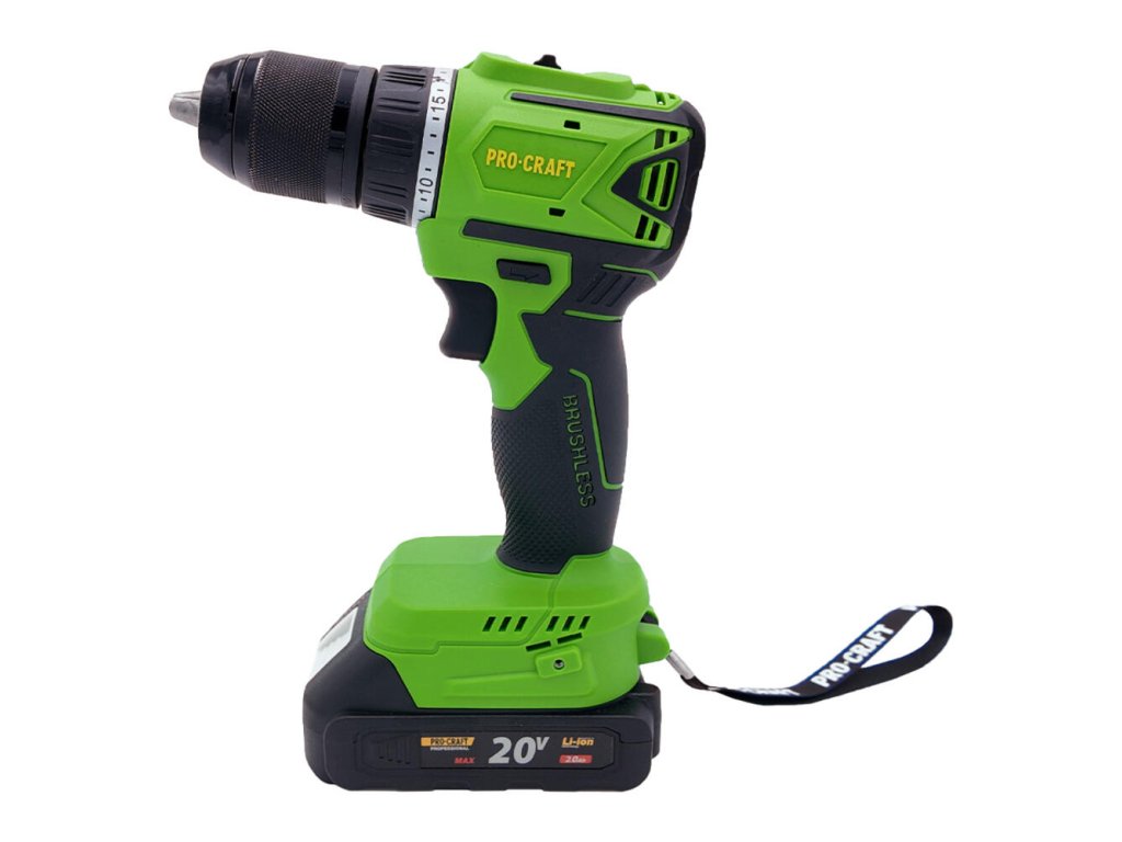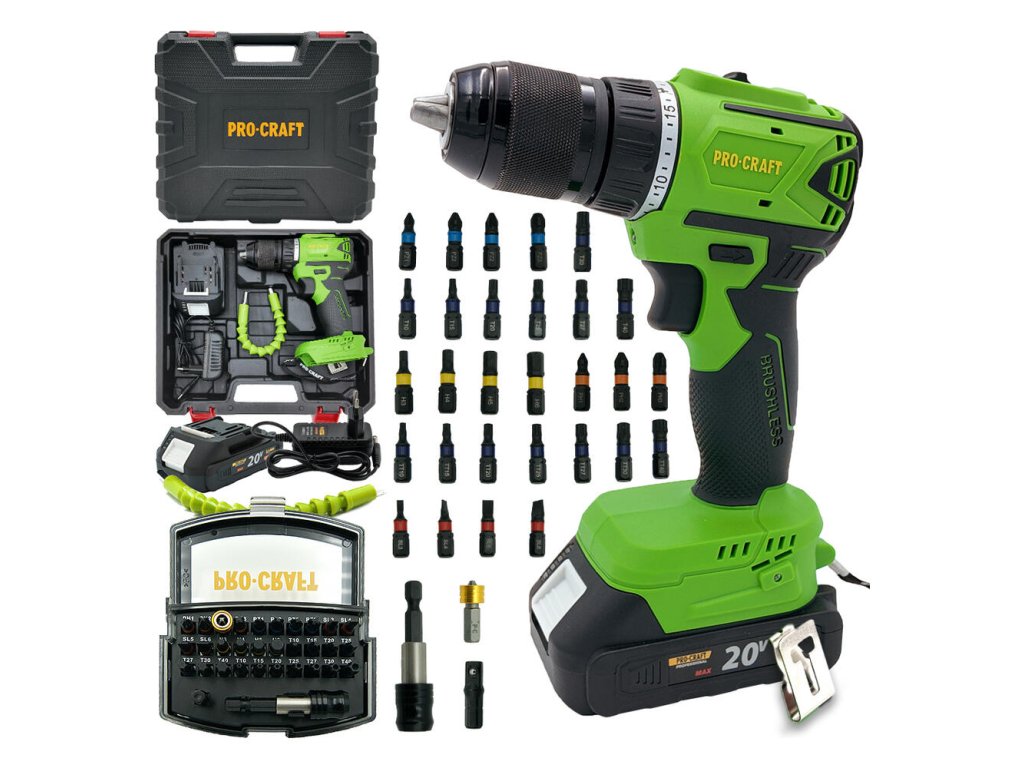 Akumulátorový vŕtací skrutkovač ProCRAFT SPA18LiN 20V 50Nm Bezuhlíkový 1x2.0Ah Sada bitov