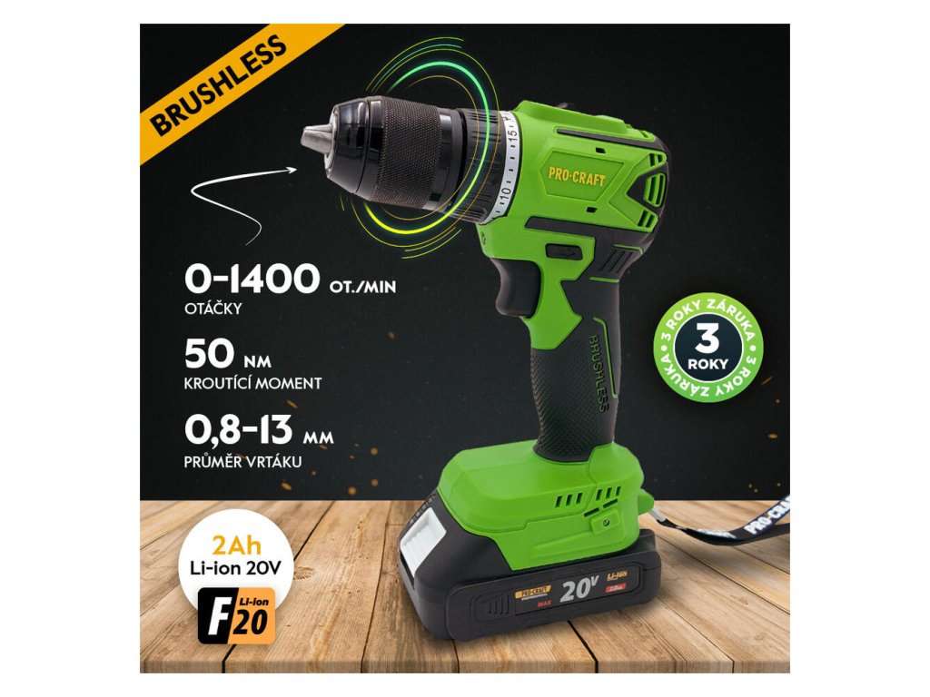 Tento model patrí do rodiny Family F20, čo znamená, že priložený akumulátor môžete použiť vo viac než 50 ďalších strojoch značky ProCRAFT. Bezuhlíková technológia zaisťuje, že sa náradie menej zahrieva a vy vyvŕtate viac otvorov na jedno nabitie. Smart LED osvetlenie navyše zostáva svietiť 10 sekúnd po práci pre vašu bezpečnosť.Hlavné vlastnosti a výhody skrutkovač ProCRAFT SPA18LiN