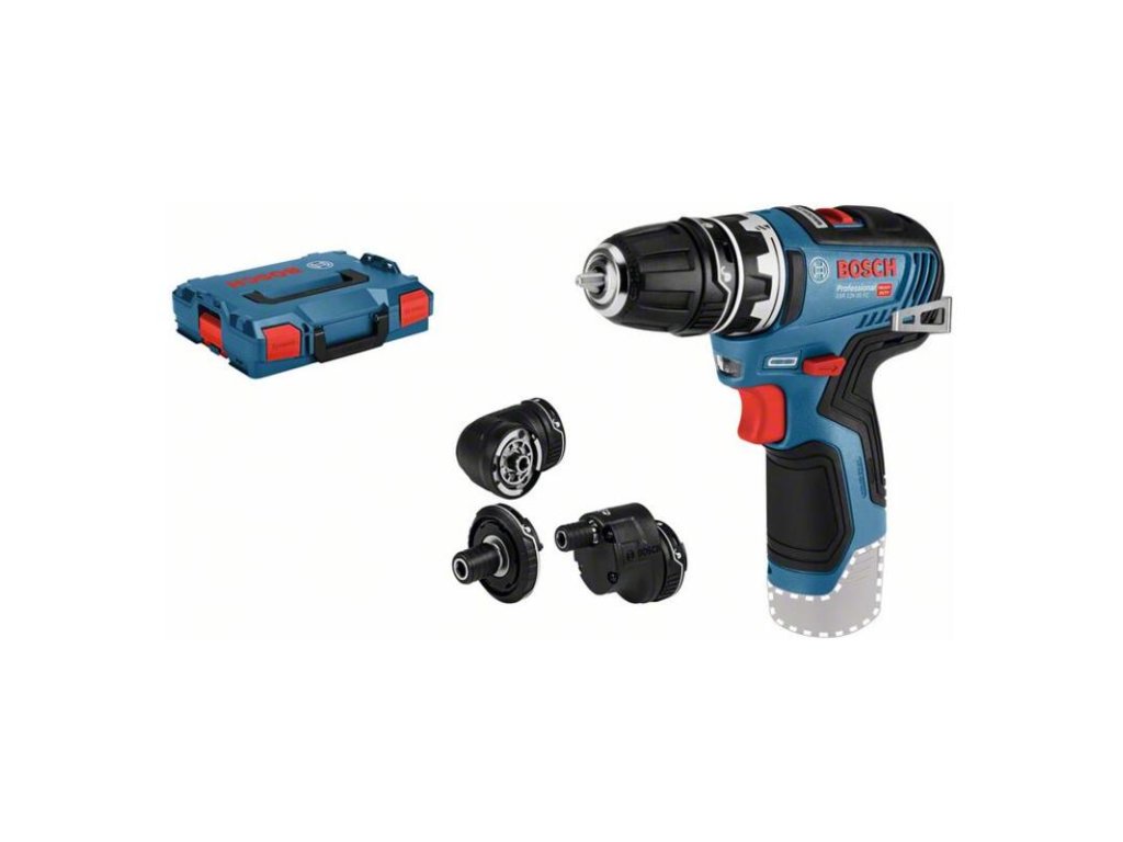 Prečo investovať do tejto komplexnej sady? BOSCH GSR 12V-35 FC ponúka najvyšší výkon v triede 12V (35 Nm) a vďaka bezuhlíkovej technológii nevyžaduje žiadnu údržbu. Štyri vymeniteľné hlavy: kovové skľučovadlo GFA 12-B, aretovateľný držiak bitov GFA 12-X, pravouhlý nadstavec GFA 12-W a excentrický adaptér GFA 12-E vám dávajú osem rôznych konfigurácií v jednom stroji. Všetko je úhľadne uložené v stohovateľnom systéme L-BOXX.Hlavné vlastnosti a výhody skrutkovač GSR 12V-35 FC