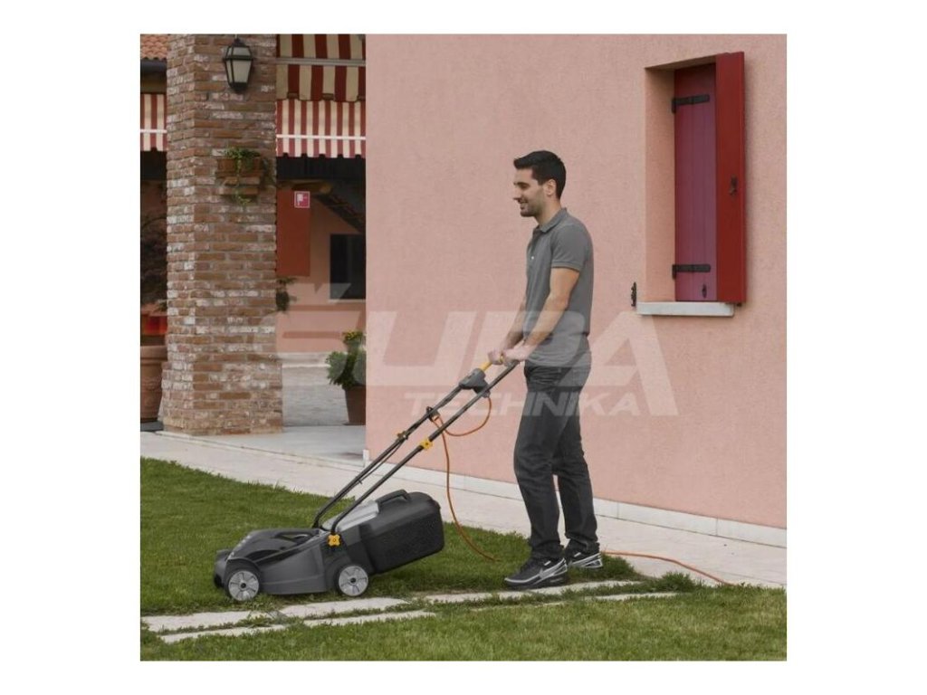 Tichá a ekologická kosačka je poháňaná elektrický motorom o výkone 1400 W a má 40 l látkový zberný koš s ukazovateľom naplnenia.
