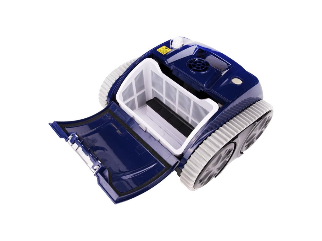 Vysávač vyčistí celé dno, steny vášho bazéna a vodnú hladinu a na konci cyklu sa zaparkuje o stenu bazéna, takže ho môžete pomocou háku vytiahnuť z bazéna.