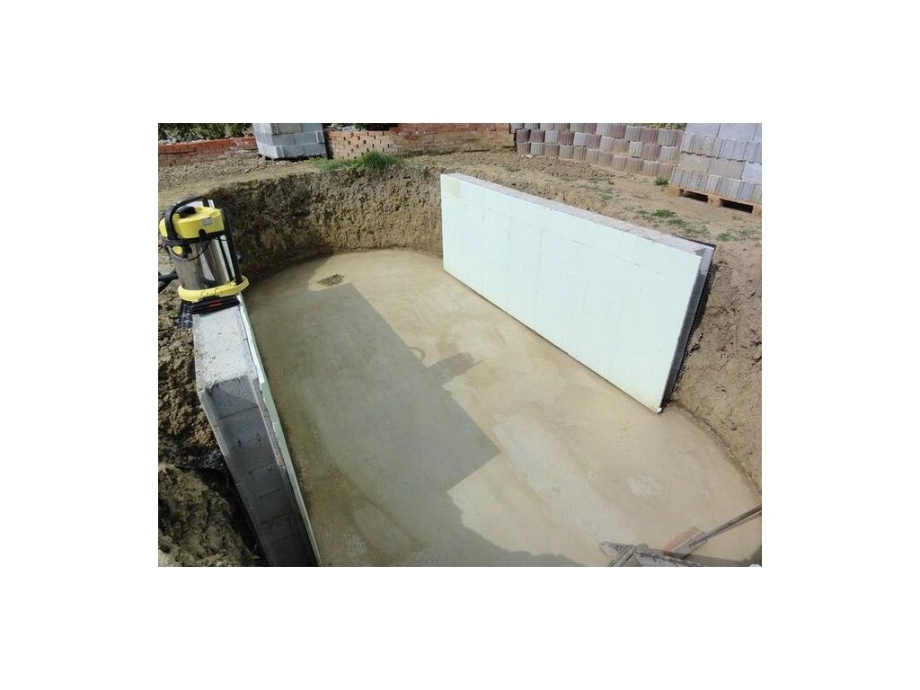 Postavený bazén odporúčame odizolovať (napr. Styrodur) a zasypať suchým betónom.