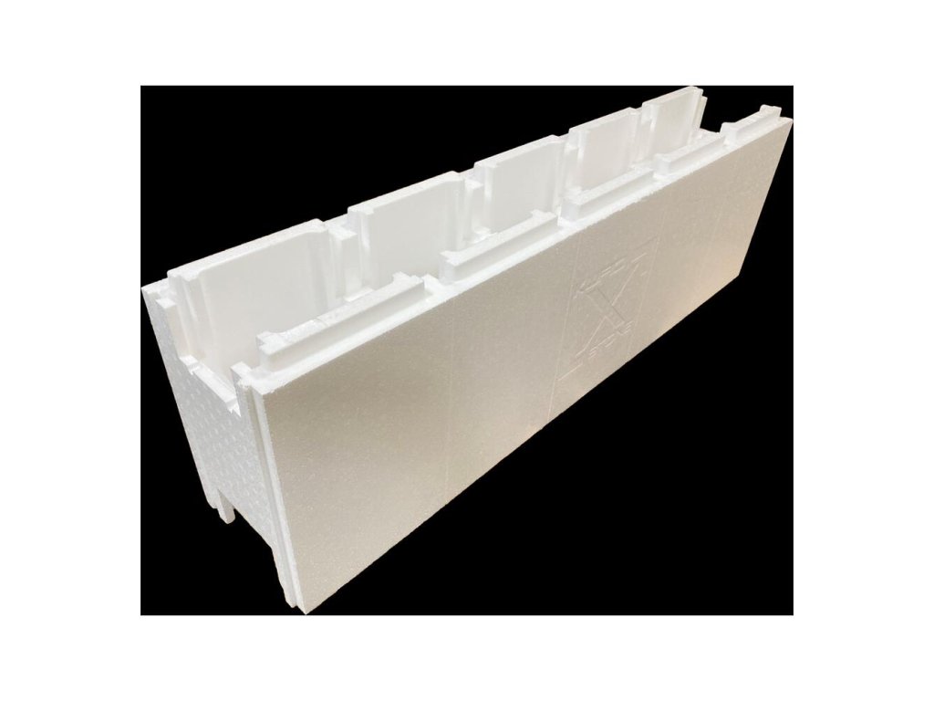 Polystyrénové bloky sú typu PS 25 (25 kg materiálu na 1 m3), majú bielu farbu a rozmery 1,25 x 0,375 x 0,25 m.