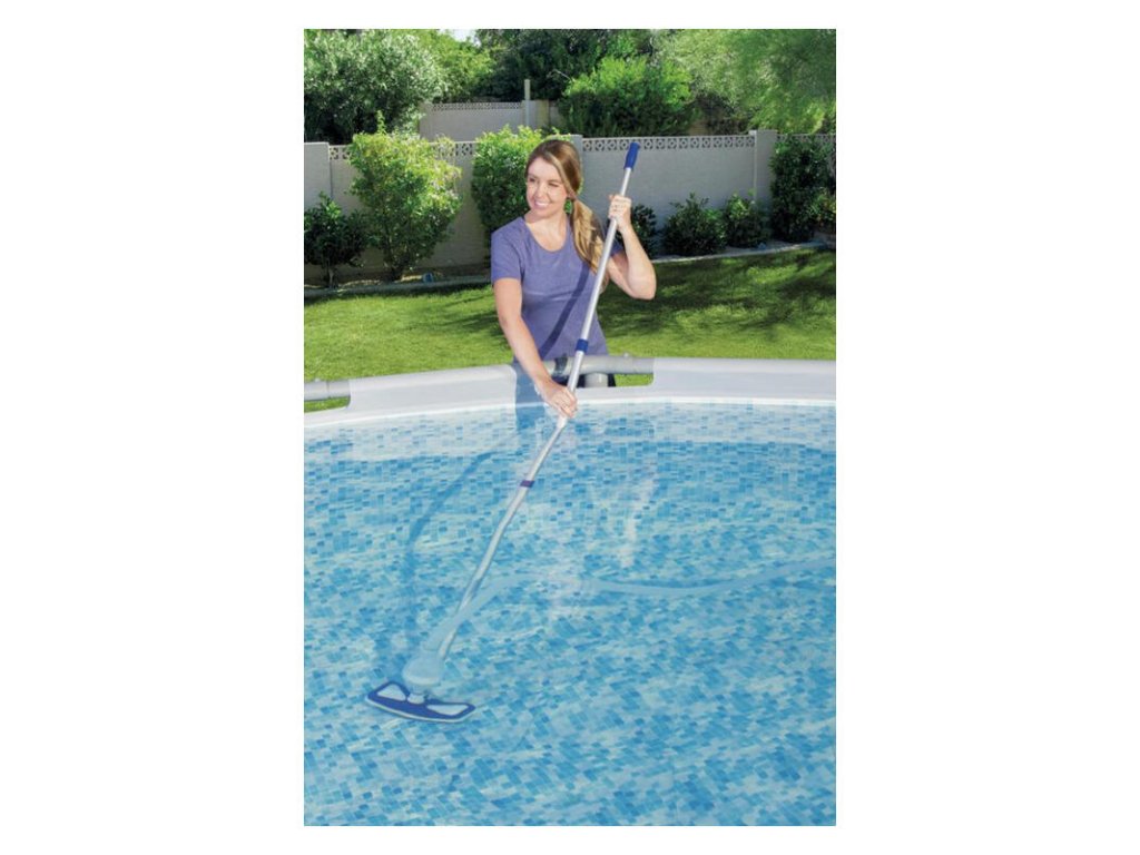 - Nastaviteľná hliníková tyč s dĺžkou 2,79 m pre bazény s veľkým priemerom.