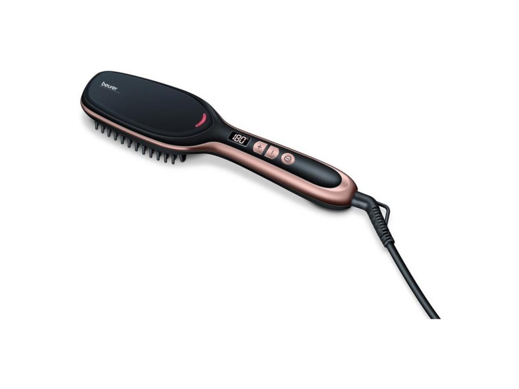 Elektrická vyrovnávacia kefa s keramickým povrchom, ióny, voľba teploty 120-200 ° C, LED displej otočný kábel.