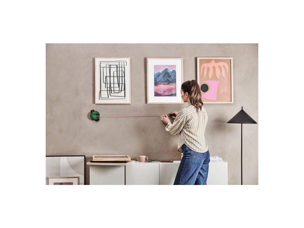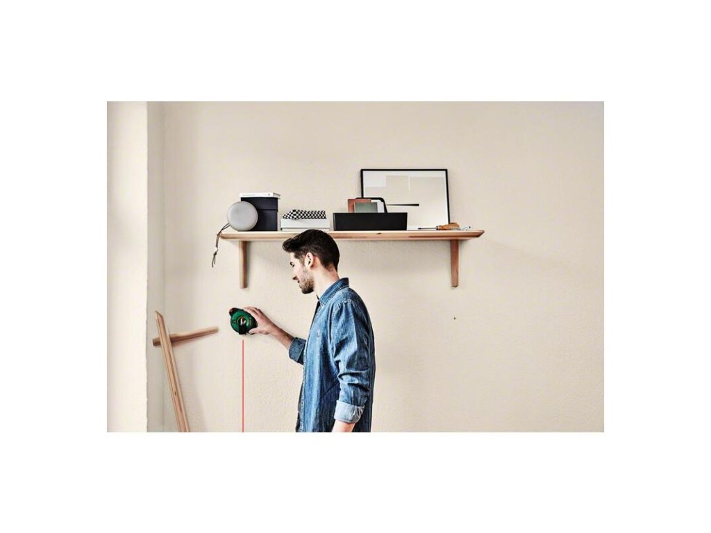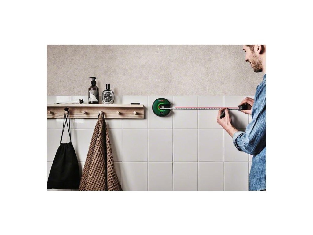 - Komplexné riešenie: líniový laser s integrovaným výsuvným metrom na jednoduché upevňovanie, vyrovnávanie a meranie
