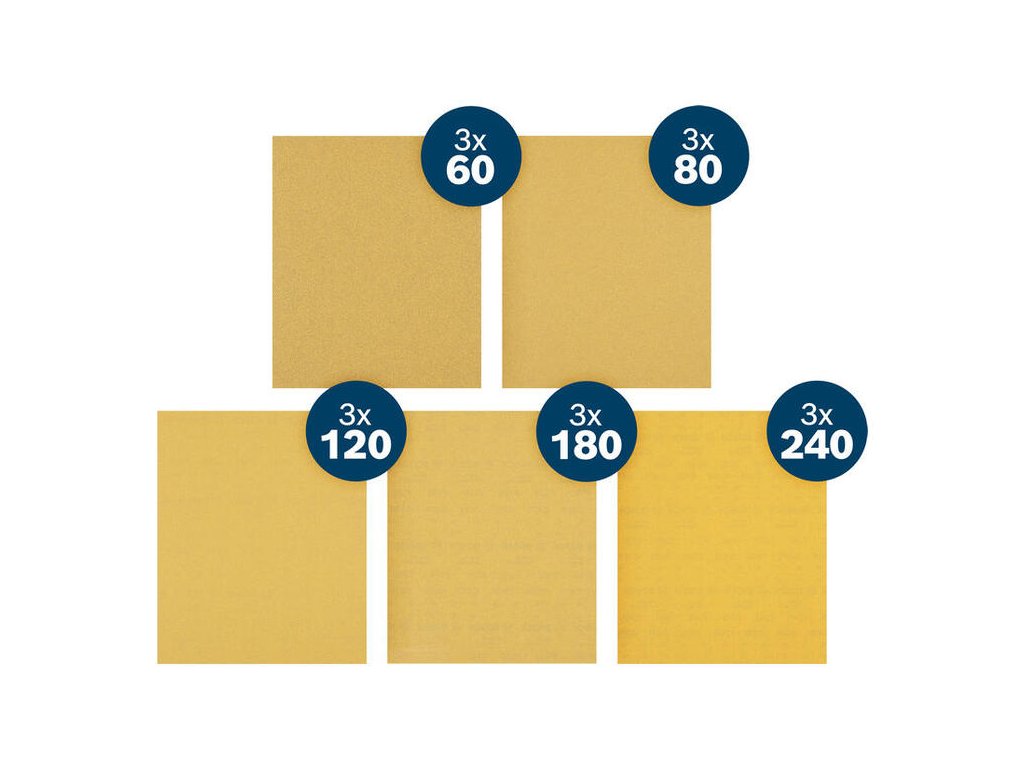 - Zloženie sady: 3x P60, 3x P80, 3x P120, 3x P180, 3x P240