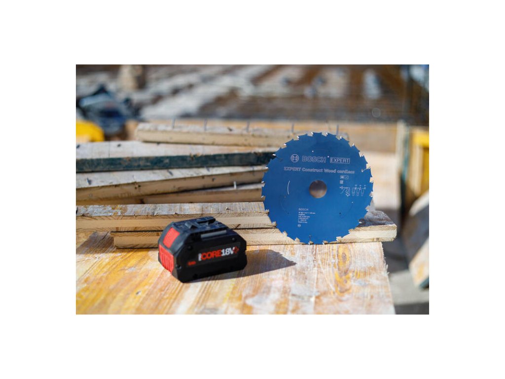 Pre náročné podmienky na stavenisku je tu kotúč Bosch EXPERT Construct Wood. Je navrhnutý tak, aby odolal nárazom pri rezaní dreva, v ktorom sú skryté klince alebo zvyšky malty. Tenký profil kotúča je optimalizovaný pre akumulátorové píly, čím predlžuje ich prevádzkový čas.