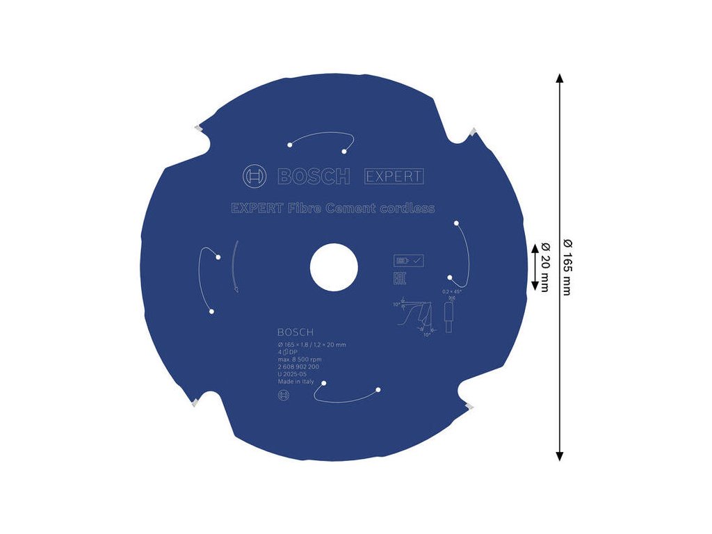 Bosch EXPERT Fibre Cement Pílový kotúč na cementovláknité dosky pre aku píly, 165 x 20 mm, 4 zuby, 2.608.902.200