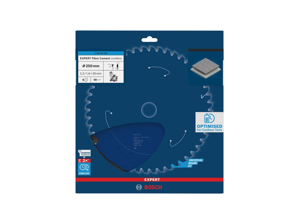 Bosch EXPERT Fibre Cement Pílový kotúč na cementovláknité dosky pre aku píly, 250 x 30 mm, 6 zubov, 2.608.902.203