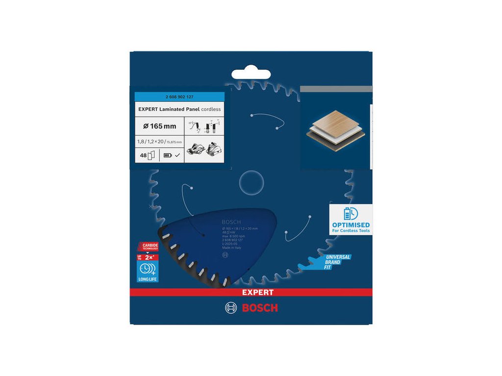 Pre najbežnejší rozmer aku píl (165 mm) a prácu s laminátom je tu kotúč Bosch EXPERT Laminated Panel. Zabezpečuje profesionálnu kvalitu rezu bez vytrhávania, čo je kľúčové pri montáži kuchýň a nábytku. Tenký profil predlžuje výdrž akumulátora.