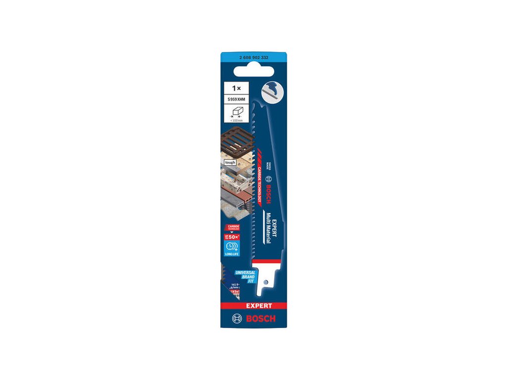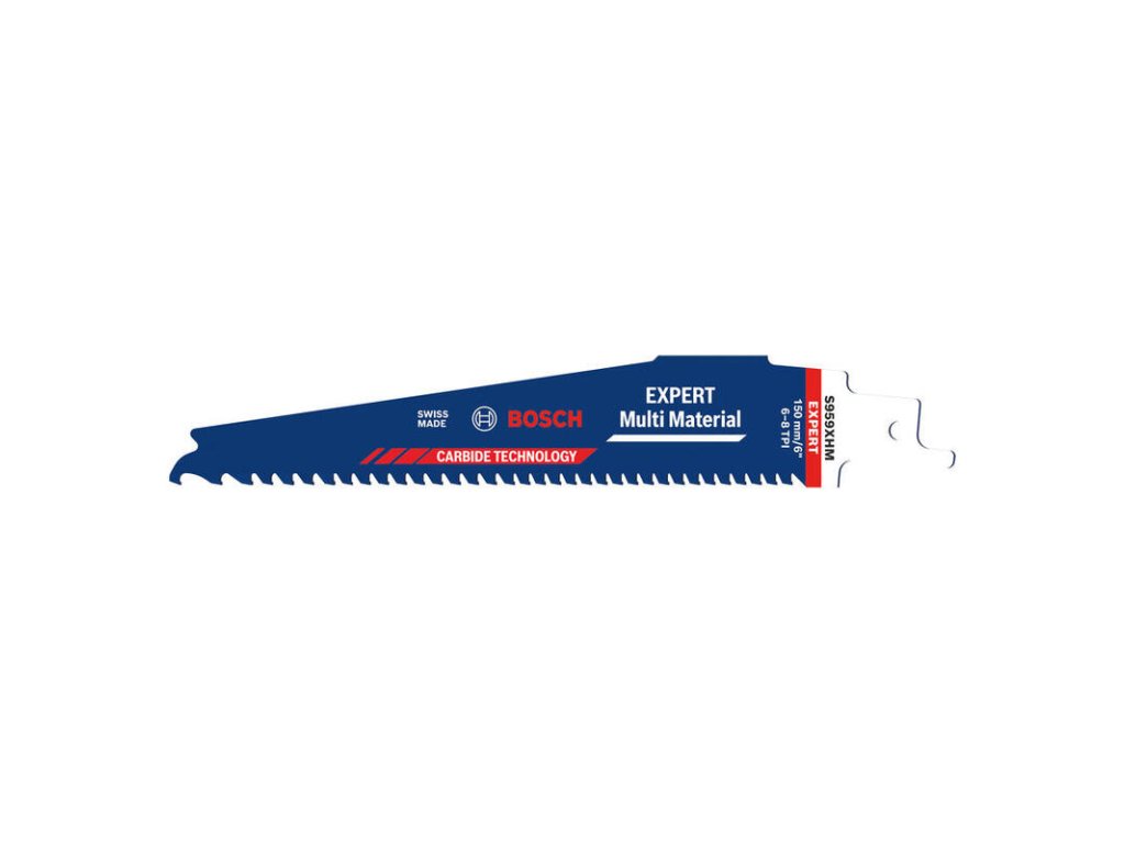 Pre univerzálne použitie v stiesnených priestoroch je tu list Bosch EXPERT S 959 XHM. Dĺžka 150 mm umožňuje dobrú ovládateľnosť, zatiaľ čo karbidové zuby prerežú všetko od dreva po oceľ.