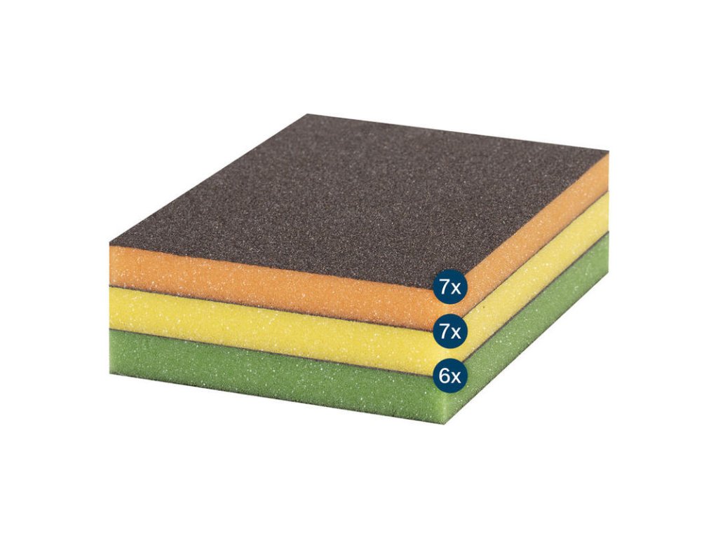 Rozmer hubky DxŠxH (mm): 100 x 70 x 25 Stupeň jemnosti /zrnitosť: 120 Balenie (ks): 1 Určené pre: Ručné brúsenie