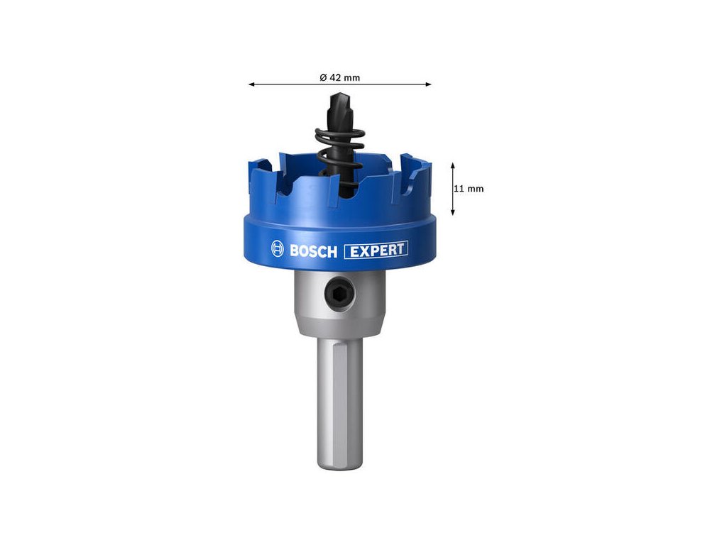 Dierovka Bosch EXPERT Sheet Metal s priemerom 42 mm je navrhnutá pre presné vŕtanie do kovov. Karbidové zuby zaručujú, že si poradí aj s nerezovou oceľou, pričom si zachováva ostrosť oveľa dlhšie než bežné nástroje.
