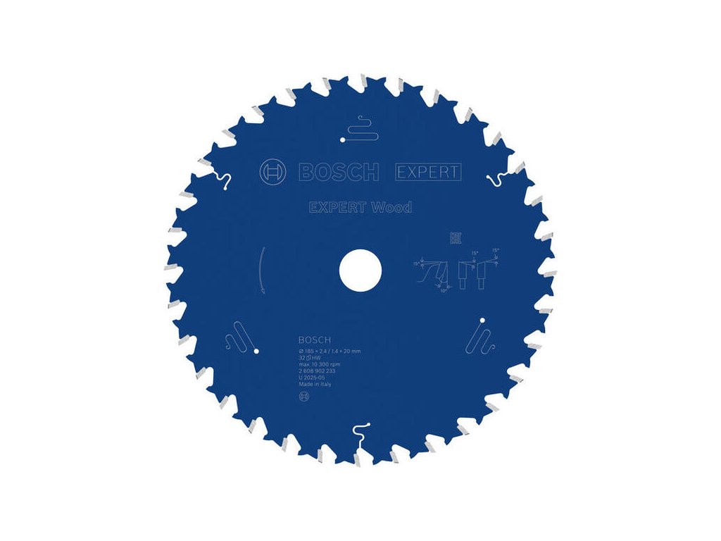 Kotúč Bosch EXPERT Wood s priemerom 185 mm a 32 zubami je "zlatou strednou cestou" pre väčšinu okružných píl. Poskytuje rýchly postup pri pozdĺžnom rezaní a dostatočnú kvalitu pri priečnom reze. Ideálny pre prácu s trámami, fošňami a OSB doskami.