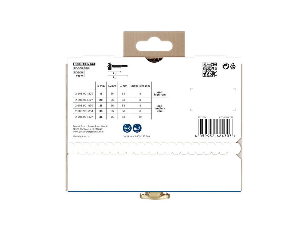 Vrták EXPERT na vyrezávanie otvorov na pánty do laminovaného dreva, 20 x 60 x 90 mmSme AUTORIZOVANÝ predajca značky BOSCH