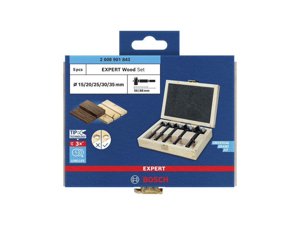 Prečo kupovať vrtáky po jednom, keď môžete mať to najlepšie v jednej sade? Sada Bosch EXPERT Wood obsahuje 5 najpoužívanejších priemerov Forstnerových vrtákov. Všetky sú vybavené technológiou Bosch Tip Technology a zvlneným ostrím, ktoré zaručuje čisté, presné otvory bez triesok a až 3-násobne dlhšiu životnosť oproti štandardu.