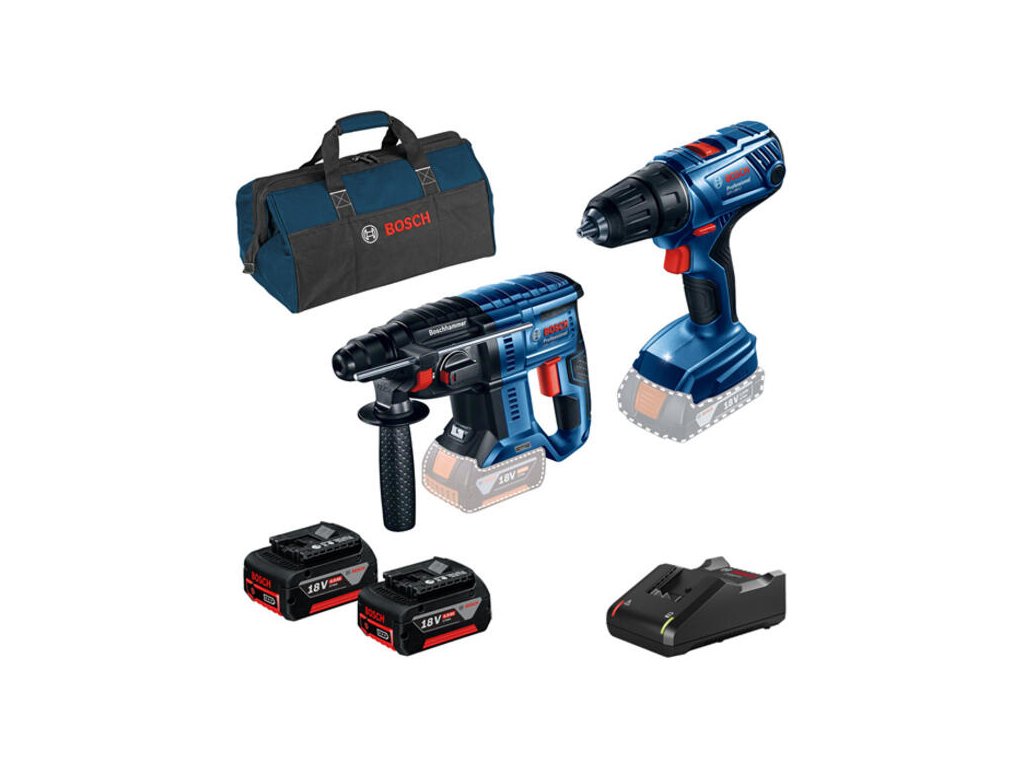 Kompletná výbava pre vŕtanie a skrutkovanie. Sada kombinuje silné vŕtacie kladivo SDS-plus s všestranným vŕtacím skrutkovačom. Vďaka pribalenej taške a dvom batériám máte všetko po ruke pre prácu na stavbe.
