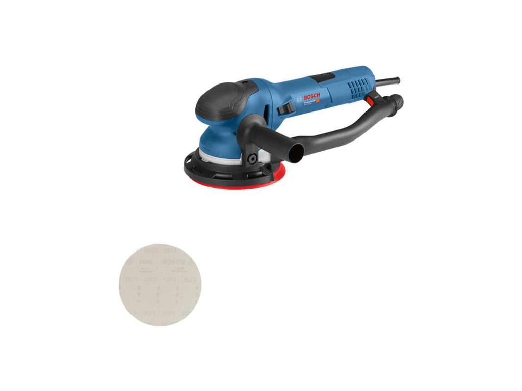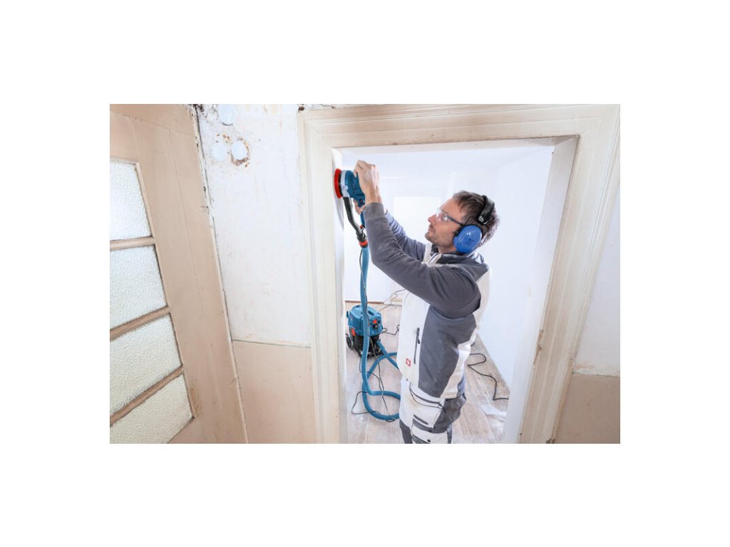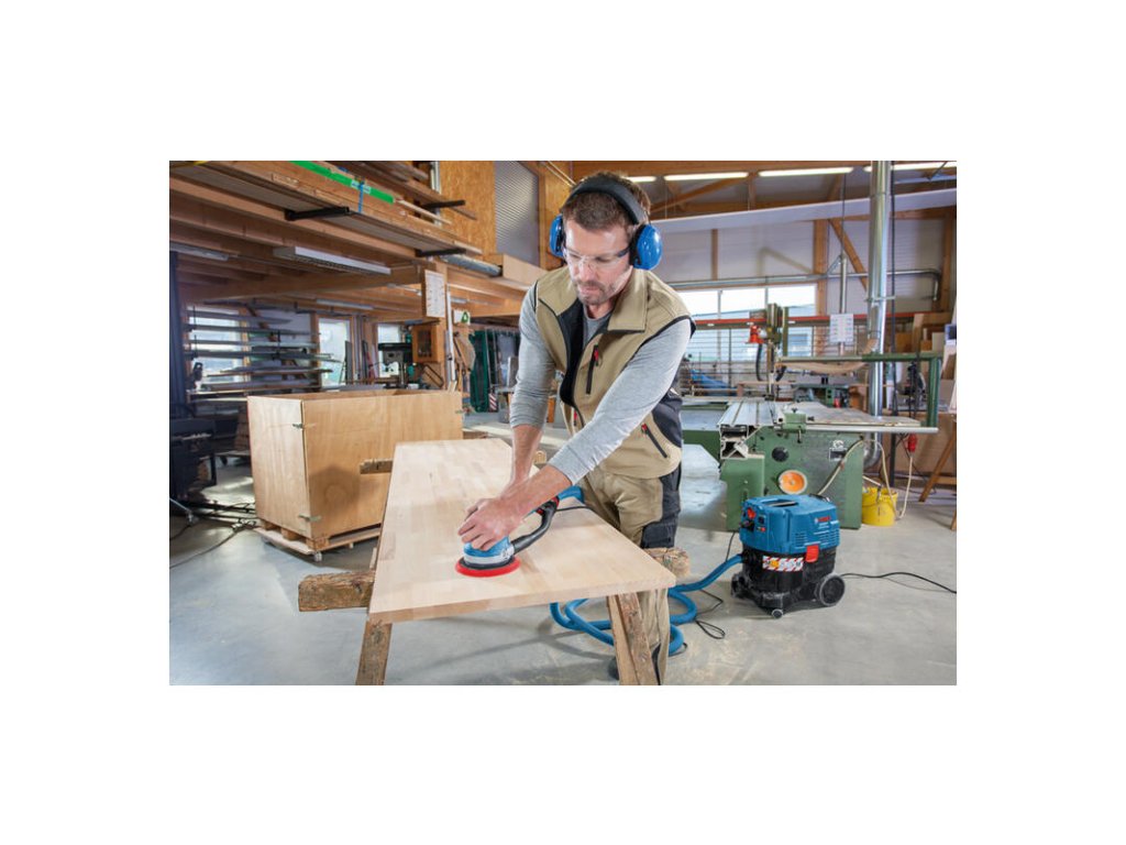 Excentrická brúska GET 75-150, Bosch GET 75-150 Professional je aktívne poháňaná elektrická excentrická brúska s priemerom 150 mm poskytujúca vynikajúce ovládanie a vynikajúcu manipuláciu. Konštrukcia s perfektnou ergonomickou prednou dlaňovou opierkou a rukoväťou s veľmi malým obvodom umožňuje vynikajúce ovládanie náradia. Brúsna doska s množstvom otvorov umožňuje praktické použitie všetkých brúsnych papierov bez ohľadu na množstvo otvorov. Je takisto vybavená extrémne výkonným motorom s príkonom 750 W a aktívnym otáčaním dosky, vďaka čomu poskytuje vynikajúci úber. Táto elektrická brúska je určená ná základné brúsenie, priebežné brúsenie, odstraňovanie náterov, záverečné spracovanie a leštenie povrchov. Možno ju použiť na drevo, dyhu, nátery, tmely, ako aj minerálne či akrylové povrchy. Je kompatibilná so systémom na odsávanie prachu Bosch Click & Clean. Kartónová škatuľa; Brúsny tanier (150 mm) (2.608.601.335); 1× brúsny list M480, Best for Wood and Paint, 120 (dostupný samostatne ako súprava 5 kusov: 2.608.621.164); Ochranný prstenec na 150 mm (2.607.017.497); Prídavná rukoväť vrátane skrutky (2.607.017.500); Sacia objímka na 150 mm (2.607.017.499); Šesťhranný kolíkový kľúč