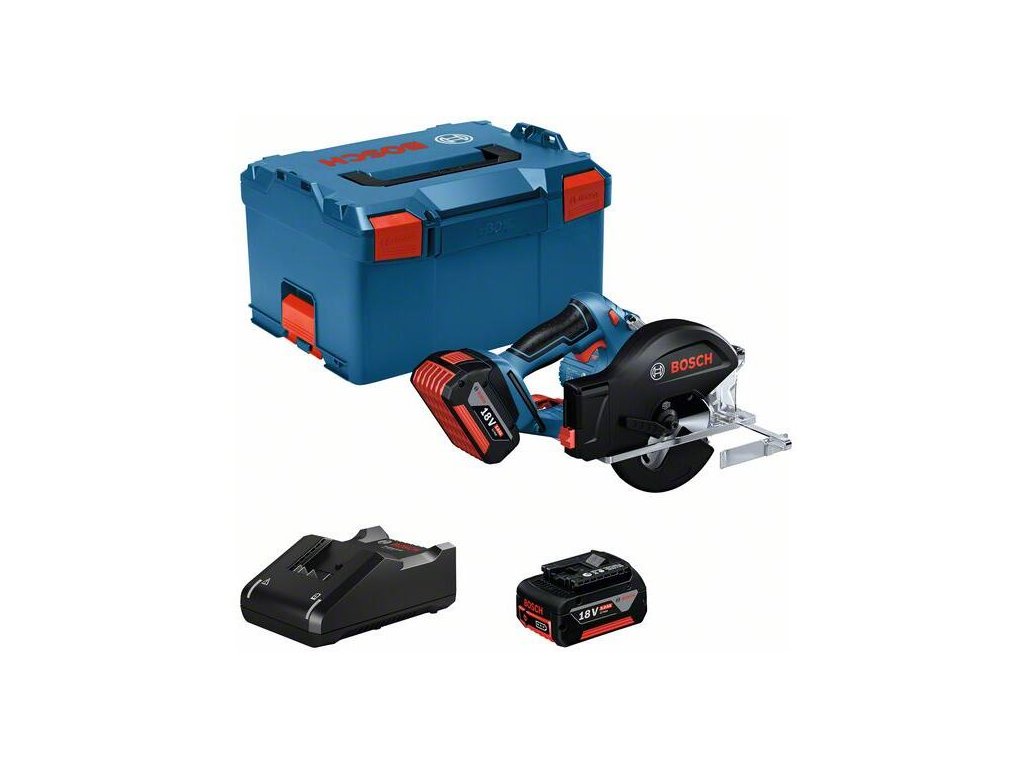 Akumulátorová okružná píla GKM 18V-50, Okružná píla na kov GKM 18V-50 Professional umožňuje rýchle a presné rezanie. Medzi ďalšie prednosti patrí práca takmer bez iskier vďaka integrovanej a robustnej zbernej nádobe na triesky, ktorá je vybavená ľahko otvárateľnými dvierkami na vyprázdňovanie. Vďaka indikátoru línie rezu, priezoru a integrovanému svetlu LED zaručuje pohľad bez tieňov a presné rezanie. Umožňuje ergonomickú a menej namáhavú manipuláciu vďaka úchopu optimalizovanému na jednoduché rezanie v rozmanitých polohách. GKM 18V-50 Professional je špecializované náradie na rýchle a presné rezanie kovu, a to najmä káblových líšt, alebo závitových tyčí a ocele (železných kovov). Náradie je kompatibilné so všetkými akumulátormi a nabíjačkami Bosch Professional 18 V (Profesionálny 18 V systém). L-BOXX 238 (1.600.A01.2G2); 2× akumulátory GBA 18V 5.0Ah (1.600.A00.2U5); Rýchlonabíjačka GAL 18V-40 Professional (1.600.A01.9RJ); 1× pílový kotúč, Standard for Steel, 136 × 1,6/1,2 × 20 mm, 30 (2.608.837.746); Paralelný doraz (2.610.347.119)