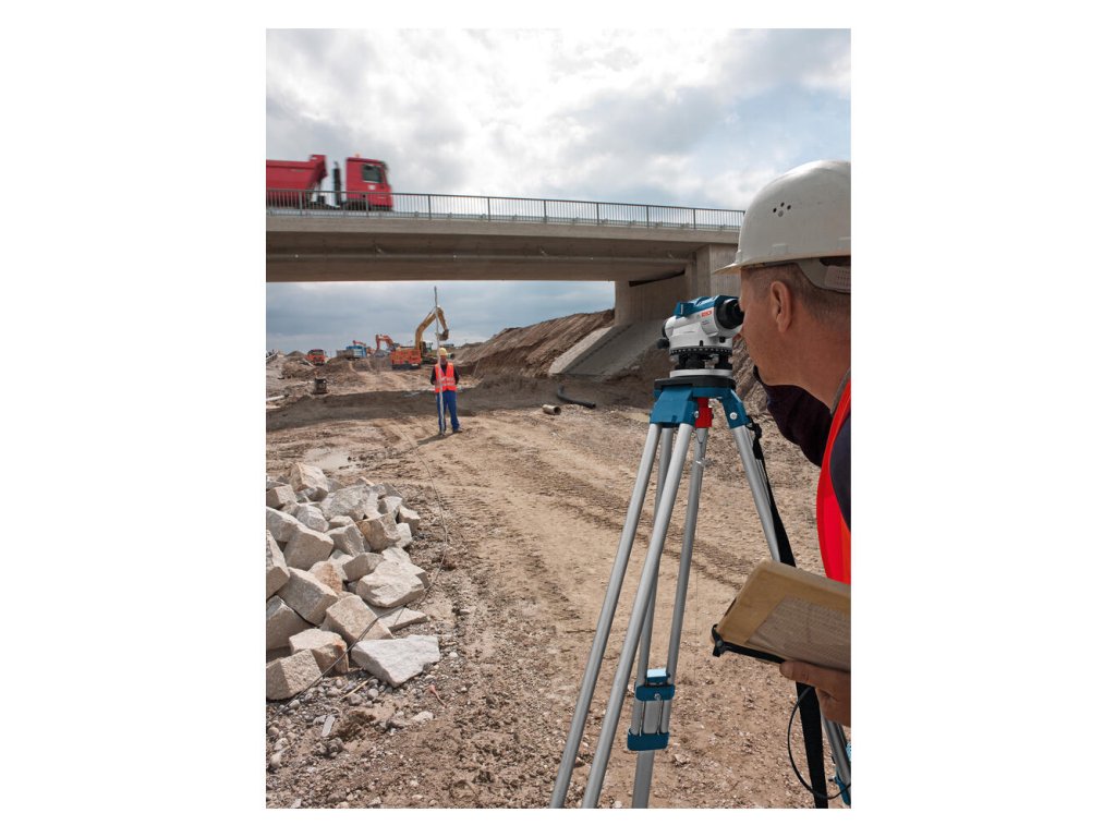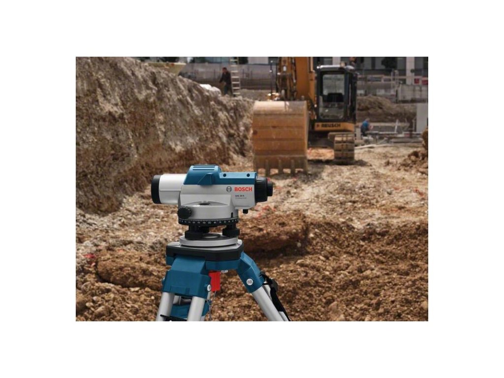 Optický nivelačný prístroj GOL 26 D, Extrémne robustný – ideálny na používanie v exteriéri, Vybavený na použitie v exteriéri vďaka stabilnému kovovému krytu s ochranou proti prachu a striekajúcej vode (IP 54), Robustný dizajn s cieľovým kolimátorom zabudovaným do prístroja a integrovanou krabicovou libelou, Bezpečná preprava vďaka blokovaciemu zariadeniu kompenzátora, Ochrana na šošovku; Olovnica; Nastavovací tŕň; Kufor na prenášanie (1.600.A00.0LF); Stavebný statív BT 160 Professional (0.601.091.200); Meracia lata GR 500 Professional (0.601.094.300)