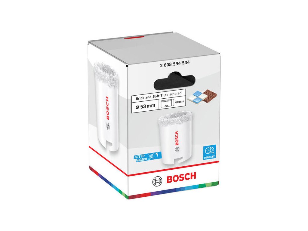Potrebujete vyrezať otvor 53 mm do tehly alebo obkladu? Karbidová dierovka Bosch s posypom je tým správnym riešením. Jej rezná hrana z karbidových zŕn si poradí aj s materiálmi, ktoré by bežnú pílku otupili.
