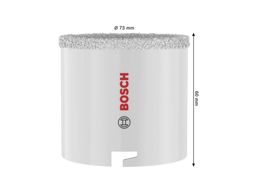 Dierovka Bosch s priemerom 73 mm a karbidovým posypom je určená pre náročné úlohy v murive. Vďaka reznej hrane z karbidových zŕn si poradí s tehlou, pórobetónom aj mäkkými obkladačkami.