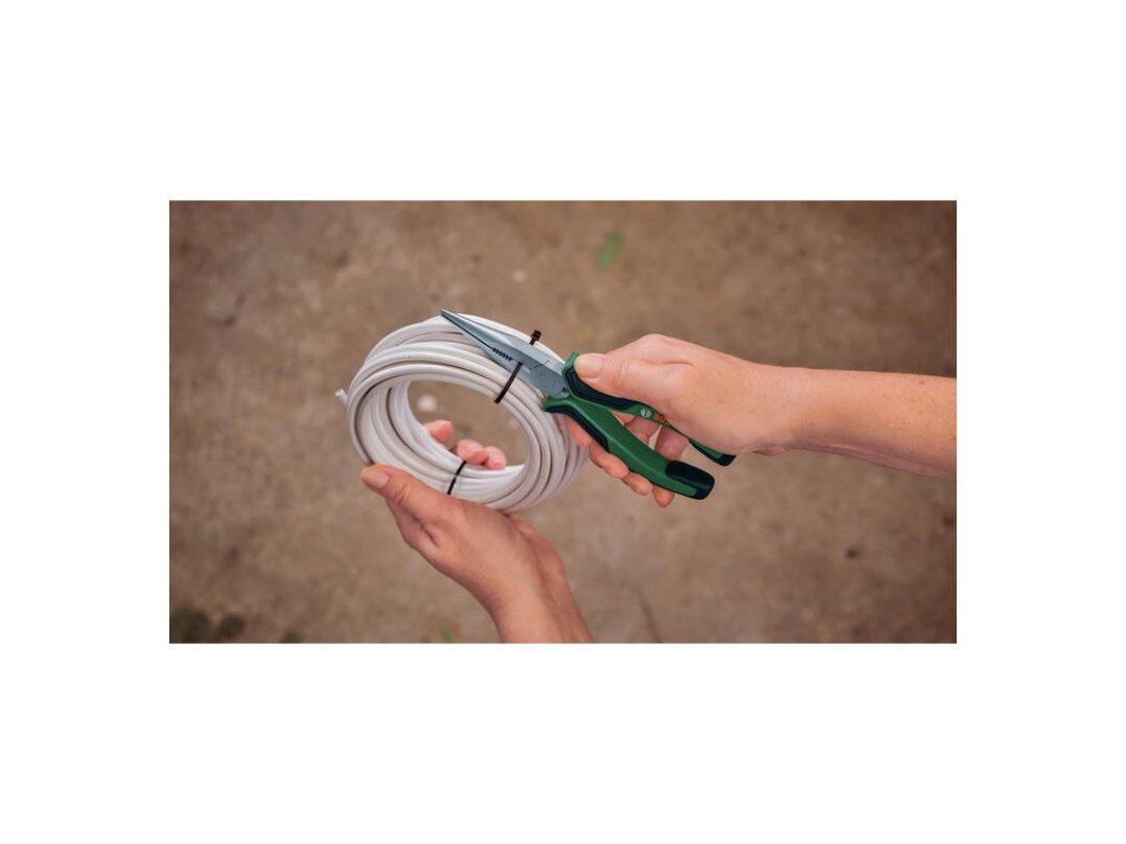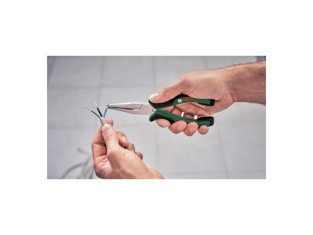 Potrebujete manipulovať s drobnými súčiastkami v hlbokých rozvádzačoch alebo motoroch? Dlhé kliešte Bosch, ľudovo nazývané "bocianky", sú na to ako stvorené. Ich štíhle, zužujúce sa čeľuste poskytujú precízny úchop. Súčasťou je aj ostrie na strihanie mäkkých a stredne tvrdých drôtov.