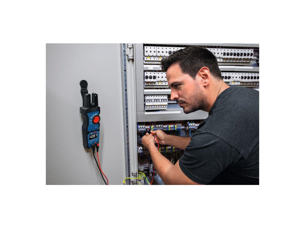 Pri meraní v rozvodnej skrini často chýba "tretia ruka". Tento šikovný magnetický vešiak tento problém rieši. Umožňuje vám bezpečne zavesiť váš multimeter alebo iný merací prístroj na akýkoľvek kovový povrch, vďaka čomu máte obe ruky voľné pre manipuláciu s meracími hrotmi.