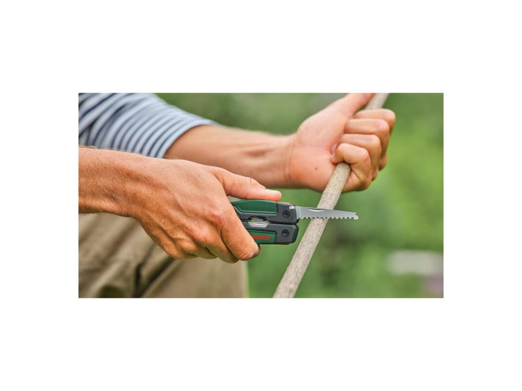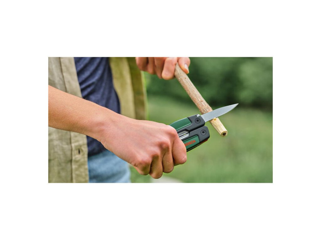 Noste celú dielňu vo vrecku. Bosch Multitool 16v1 je precízne spracovaný nástroj pre každú situáciu – od kempovania až po rýchle opravy v domácnosti. Obsahuje všetko potrebné: ostrý nôž, pílku, kliešte, nožnice, skrutkovače a otvárače. Telo z nerezovej ocele zaručuje, že vám vydrží roky.