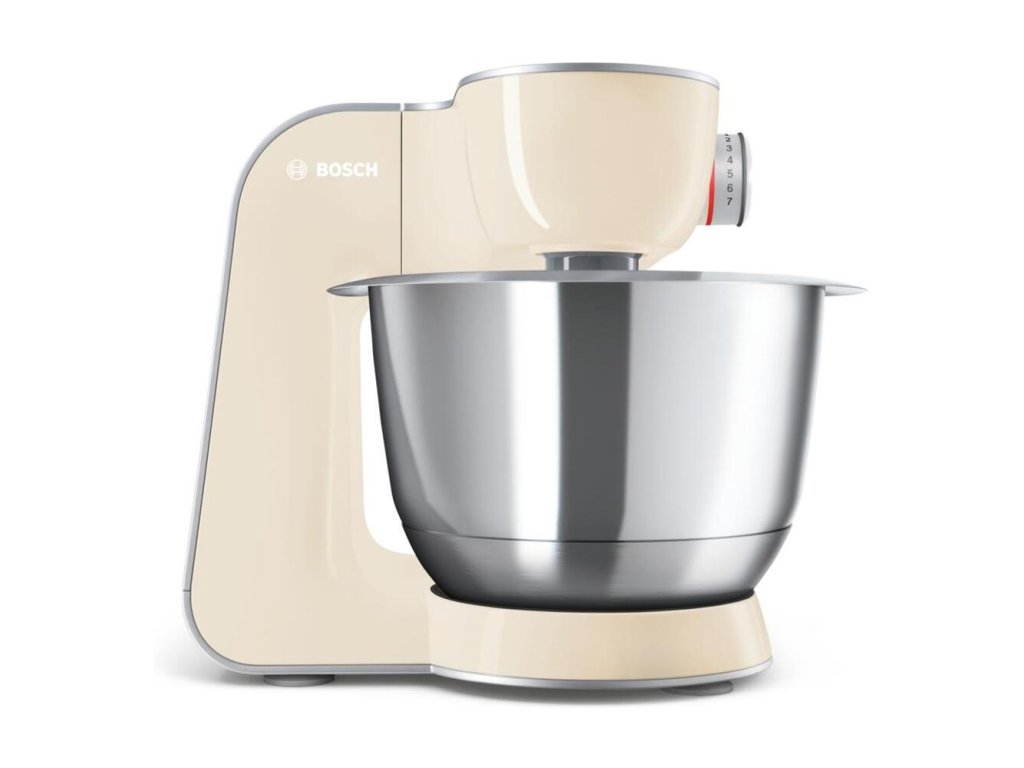 Kuchynský robot ponúka extra silný príkon 1000 W pre rýchle spracovanie cesta. Dynamický planetový prevod umožňuje miešať suroviny v troch smeroch zároveň a elektronické riadenie počtu otáčok umožní nastaviť až 7 stupňov výkonu. Stlačením jedného tlačidla ovládate pohyb multifunkčného ramena na čo najjednoduchšiu výmenu miešacích nástrojov. Na maximálne bezpečné používanie je prístroj vybavený prísavnými gumovými nožičkami, ochranou pred preťažením či poistkou proti opätovnému zapnutiu.