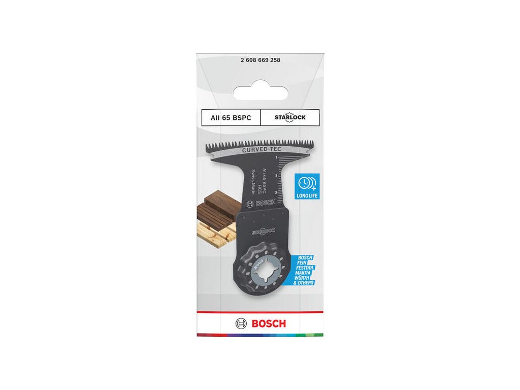 Pre presné prispôsobovanie parkiet alebo rezanie do tvrdého dreva. List Bosch AII 65 BSPC má japonské ozubenie pre rýchly a čistý rez. Šírka 65 mm poskytuje stabilitu pri dlhých rezoch.