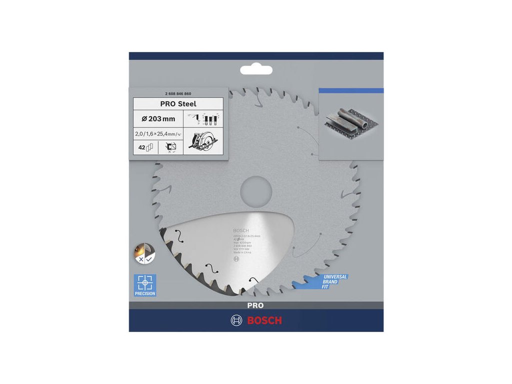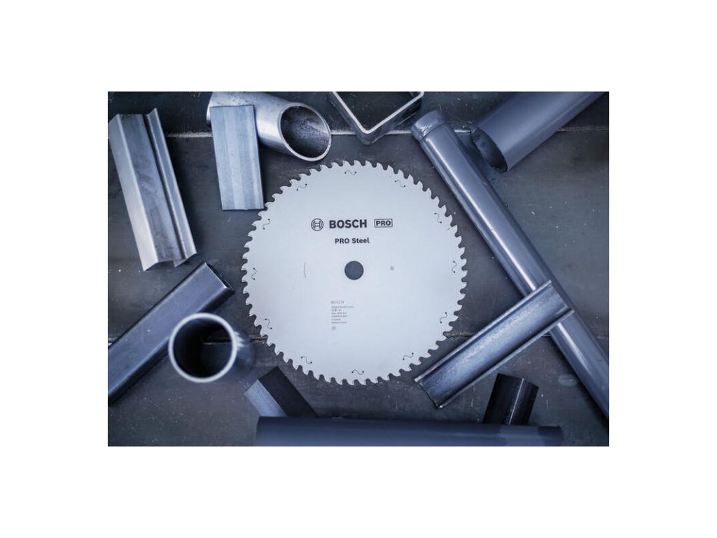 Pre sieťové píly na kov (Dry Cutter). Kotúč Bosch PRO Steel s priemerom 203 mm umožňuje rýchle a bezpečné delenie oceľových profilov bez iskier a prehrievania. Karbidové zuby sú navrhnuté pre vysokú záťaž.